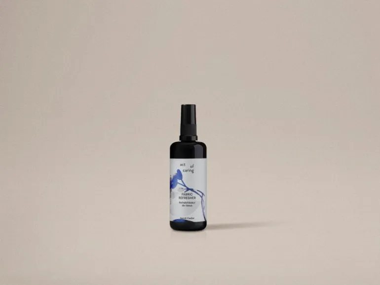 Act of Caring’s vegan Fabric refresher freshens clothes and other textiles. The refresher neutralizes unwanted odors, leaving a delicate scent of neroli, cedarwood and lavender. The gentle textile spray is also suitable for use on delicate fabrics.