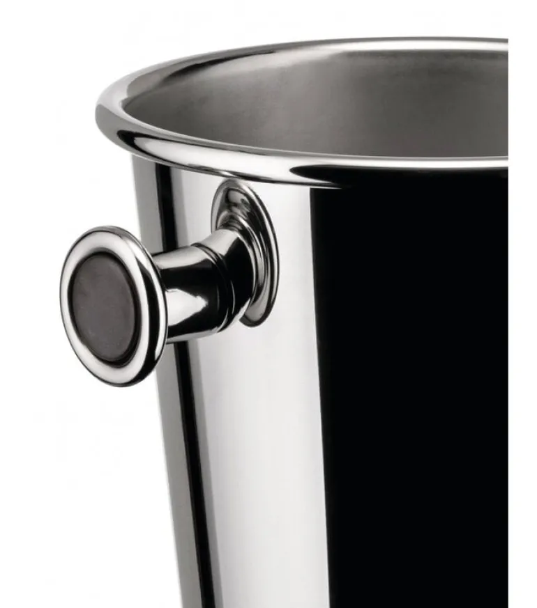 Alessi’s ice bucket keeps ice cubes cold in style. The bucket has convenient handles that make it easy to carry the bucket to the dinner table or to the patio for a garden party. Designed by Ettore Sottsass, the ice cube bucket is made of stainless steel with a mirror-polished gloss that adds a wonderfully luxurious touch to everyday life, cocktail parties and special occasion table settings.