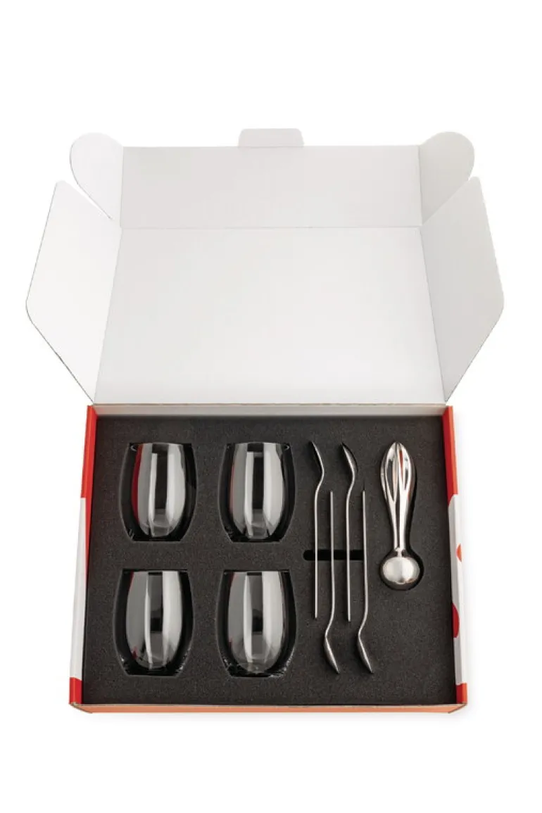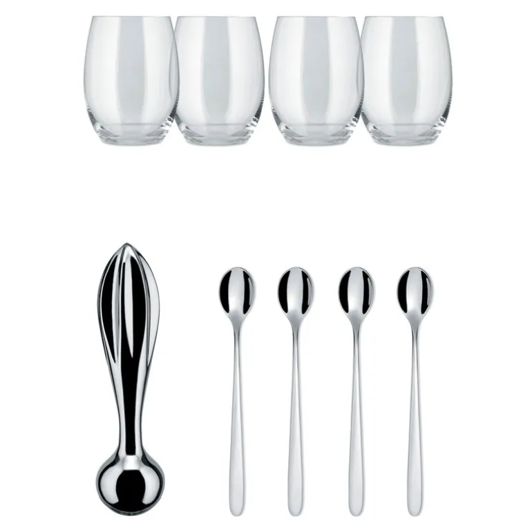Alessi’s The Player mixing set is sure to bring a smile on any cocktail aficionado’s face, with style and quality fit for everybody’s taste. Designed by Stefano Giovannoni, Guido Venturini and Achille Castiglioni, the cocktail set includes four long drink spoons, four long drink tumblers and a citrus squeezer, which doubles as a pestle. With style suited to cozy get-togethers and larger gatherings alike, The Player is a refined choice for any mixologist. Whichever drink you may prefer, Alessi’s The Player cocktail set is the ideal gift for a mixology enthusiast, but also adds a unique sense of style to both moments of everyday bliss as well as celebratory times.