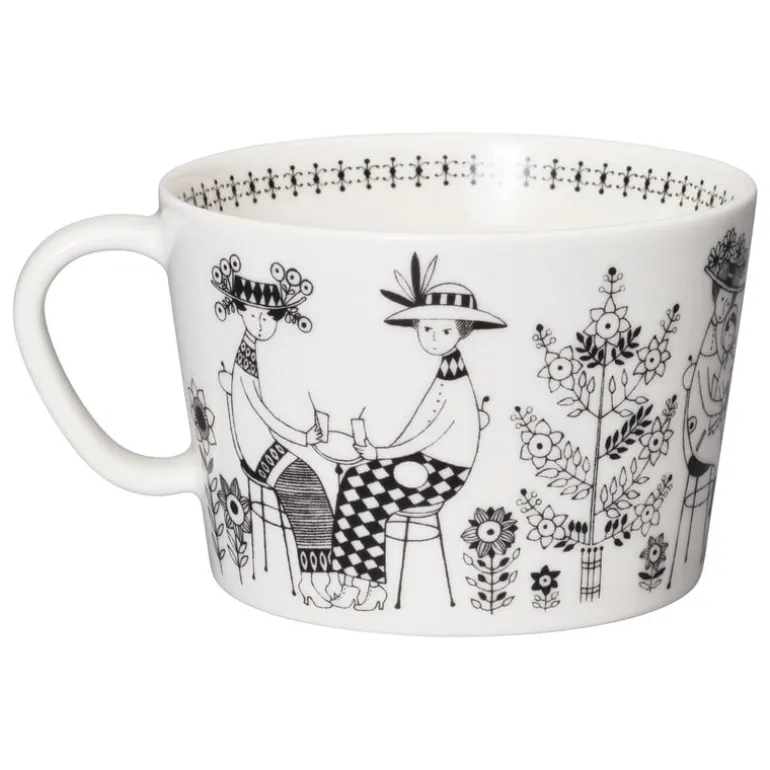 Arabia’s Emilia tea cup is adorned with a delightful decoration designed by Raija Uosikkinen. She originally created the enchanting Emilia decoration in 1957, and the series was in Arabia’s production until the year 1966. Emilia brought a fascinating contrast to the sleek and simple designs of the 1950s, as it was decorated with vines and beautiful details, yet tamed by its black-and-white coloring. Arabia re-launched the enchanting Emilia decoration in 2023.