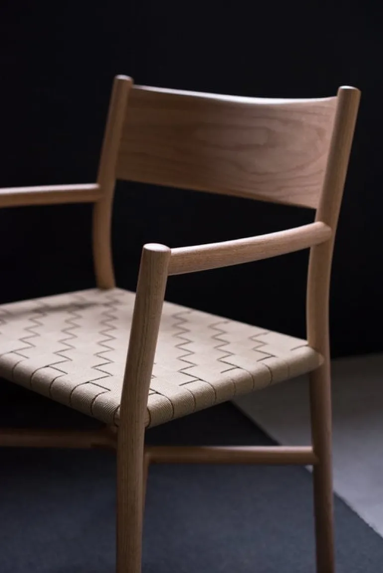 The Ariake arm chair beautifully combines Japanese and Scandinavian esthetics: the slightly curved backrest, pole-like legs and a crossed support structure add a touch of Japanese harmony and softness to the otherwise simple form typical of Scandinavian furniture. The natural shades and different seat options make Ariake, designed by Gabriel Tan, suitable for any interior.