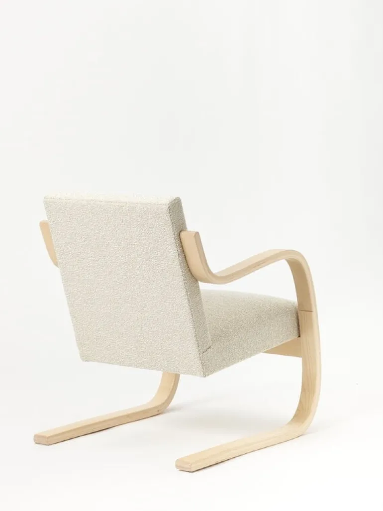 Designed by Alvar Aalto for Artek, the Armchair 402, also known as Atelje, has a more lightweight structure than Aalto’s famous Tank chair. Moreover, the seat height is five centimeters higher than in the Tank chair, giving the Armchair 402 a larger use range. The flexible wooden frame makes the armchair extremely comfortable, following the movements of the sitter. The armchair 402 is one of those pieces of furniture introduced by Alvar Aalto in 1933 in London at the Fortnum & Mason department store’s exhibition. The classic armchair is available in several upholstery options.