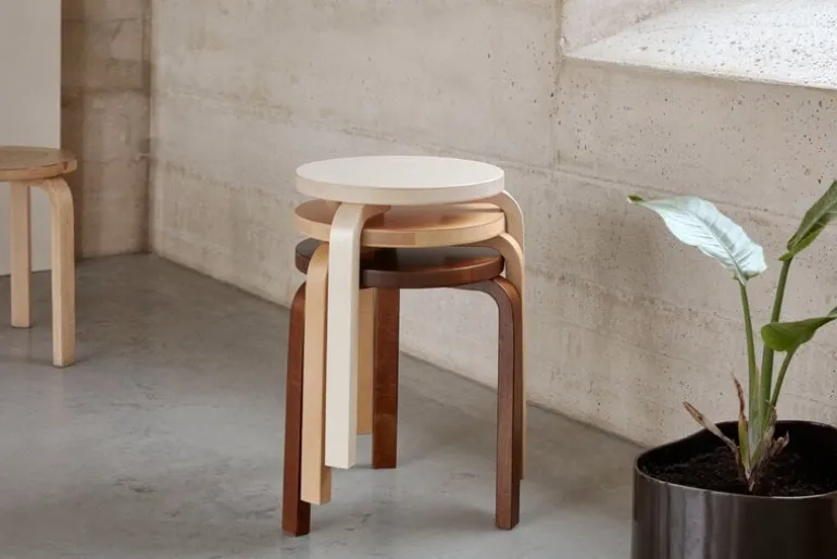 Stool 60, designed by Alvar Aalto for Artek, is one of the icons of Finnish furniture design. The three-legged Aalto stool is still today a beautiful, genius product whose simple shape will always be modern. Stool 60 makes a perfect extra chair and can also be used as a small table, for instance, next to an armchair or bed. The stools are easily stackable as a beautiful tower when not in use.