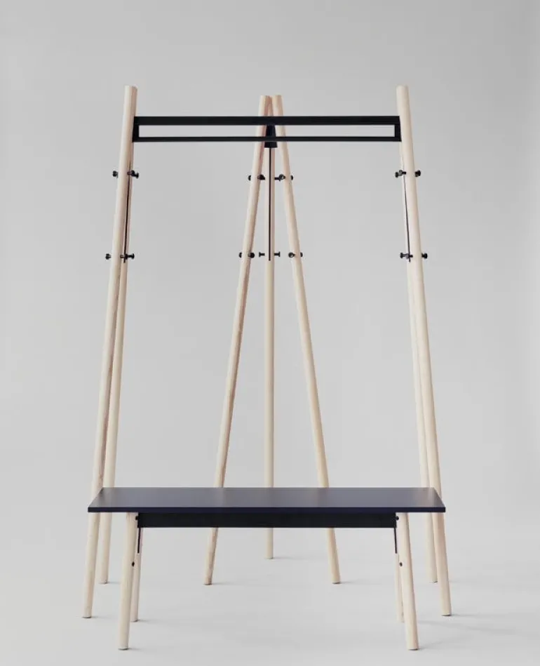 Artek’s Kiila coat stand combines ash wood and polyamide hooks in a smart and minimalist manner. Designed by Daniel Rybakken, Kiila coat stand is a perfect fit for both large and tiny spaces, and thanks to the low center of gravity, it can accommodate a great weight of coats and accessories. Kiila is Finnish for a wedge, and the whole collection was named after the wedge joints and pins that have been left visible on purpose.
