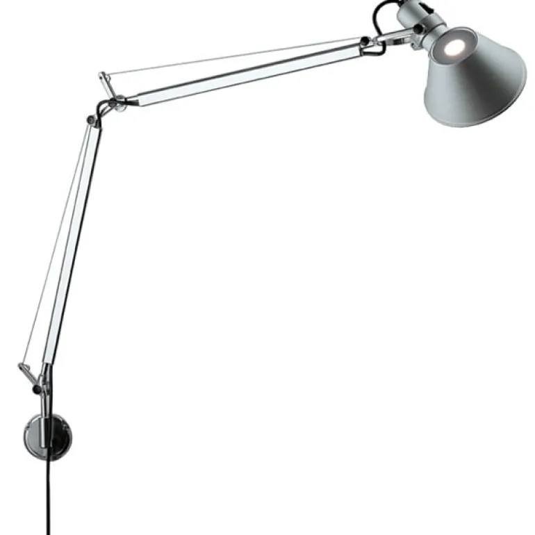 Artemide’s Tolomeo Mini Parete wall lamp is a renowned classic of Italian design. The Tolomeo Mini Parete lamp features an aluminum structure with conical shade, and the characteristic spring system allows the light to be adjusted to any direction.