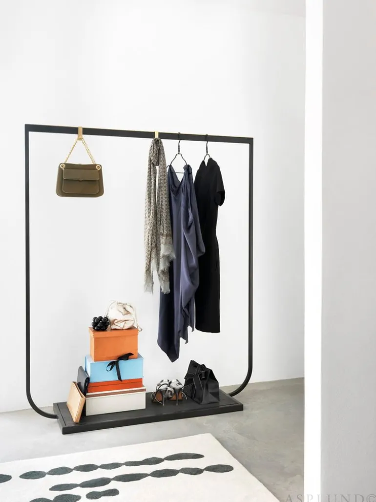 The Tati coat rack is a sophisticated choice for your entryway, but due to its original and stylish shape the Tati coat rack in other rooms as a clothes rack. The luxurious Carrara marble of the base adds a dash of drama to the simple metal frame.