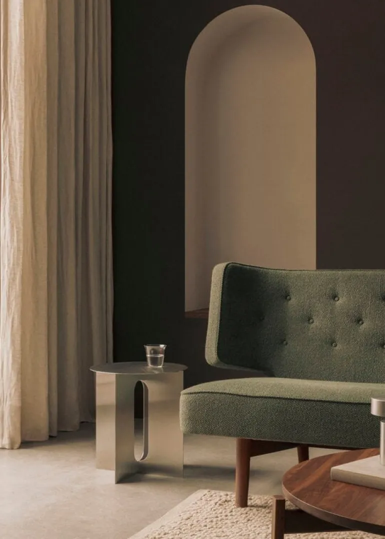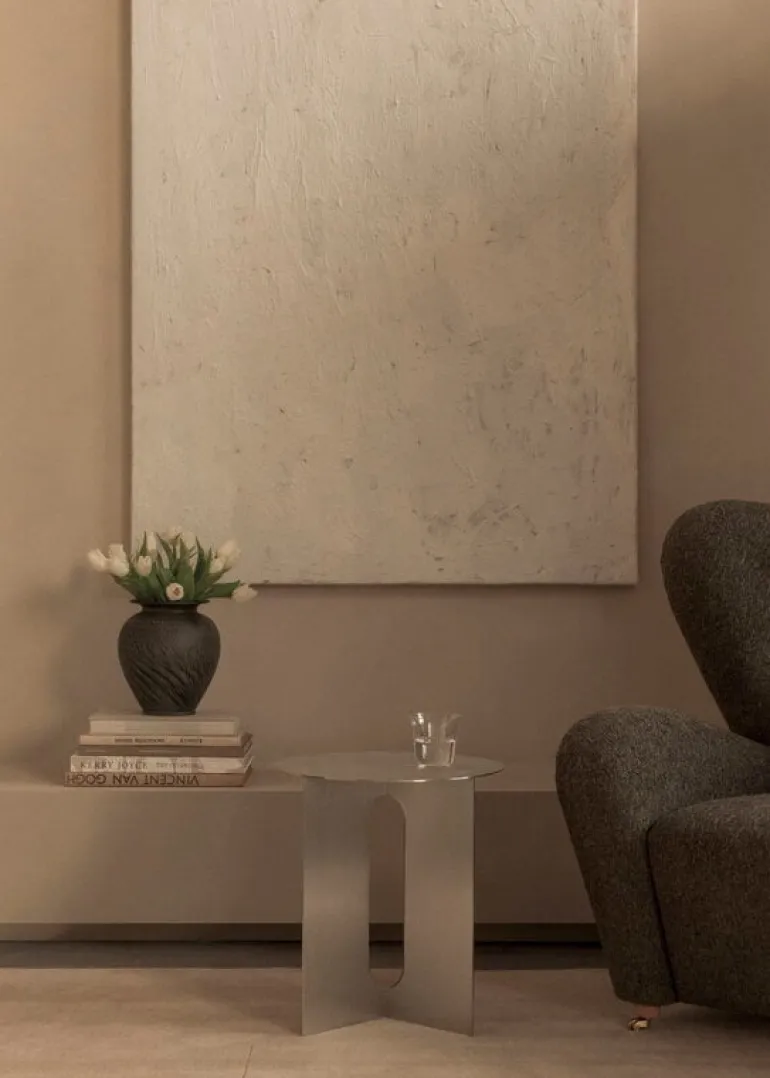 Audo Copenhagen’s Androgyne side table is a charming combination of contrasting features. The brushed steel table plays with feminine and masculine elements, soft cuts and sharp edges, as well as simple and bold silhouettes. Danielle Siggerud designed the Androgyne table originally for the Menu Space Café in Copenhagen, and the stylish little table was quickly taken into larger production. Androgyne looks great by a sofa, bed or window, and it can be perfected with a separately sold marble top.
