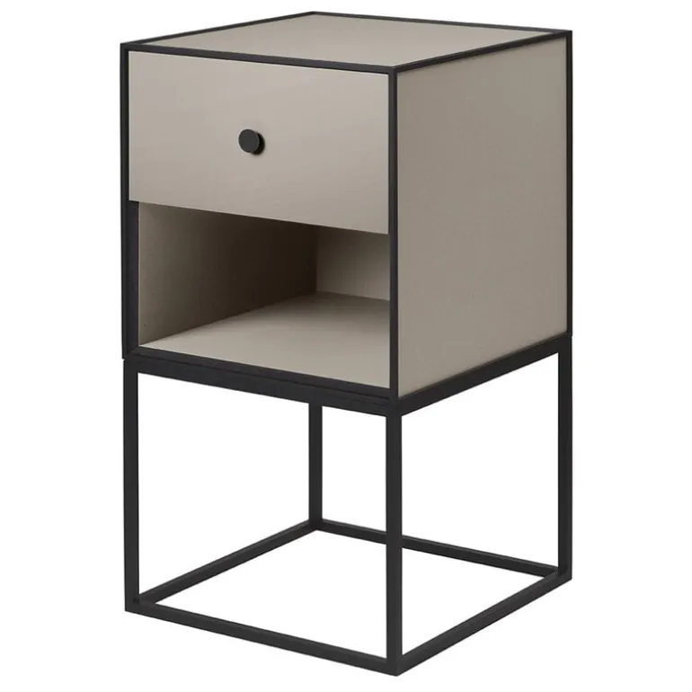 The Frame sideboard from Audo Copenhagen consists of a cubic storage box, complete with one drawer, standing on a simple metal pedestal. The minimalist side table is part of By Lassen’s classic Frame storage system and, like the rest of the series, is characterized by black metal frames that add a nice contrast to the otherwise reduced design.