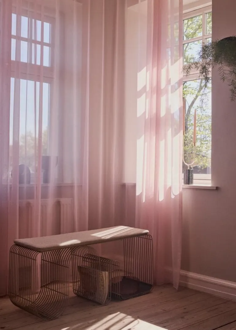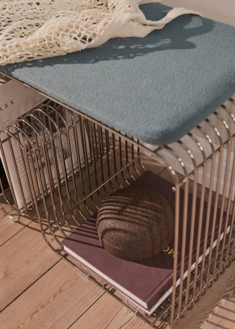The Curva bench by AYTM attracts the eye with its curvy shape and stylish metallic finish. Made of bent iron, the Curva is not only a strong and practical stool but also an expressive decorative object. The Curva bench makes a convenient hallway chair or practical extra seat in the living room, and its airy structure allows it to serve as a storage unit, too, with wavy lines that can hold books, shoes or houseplants.