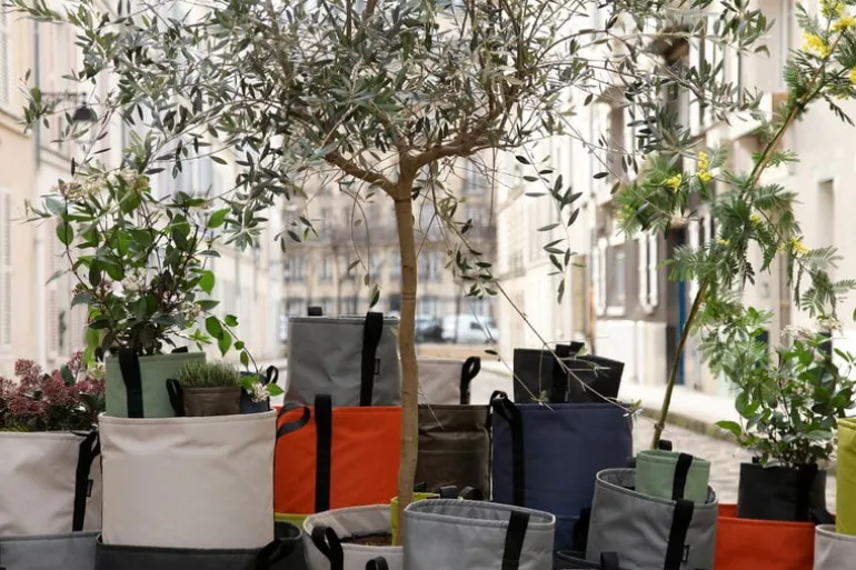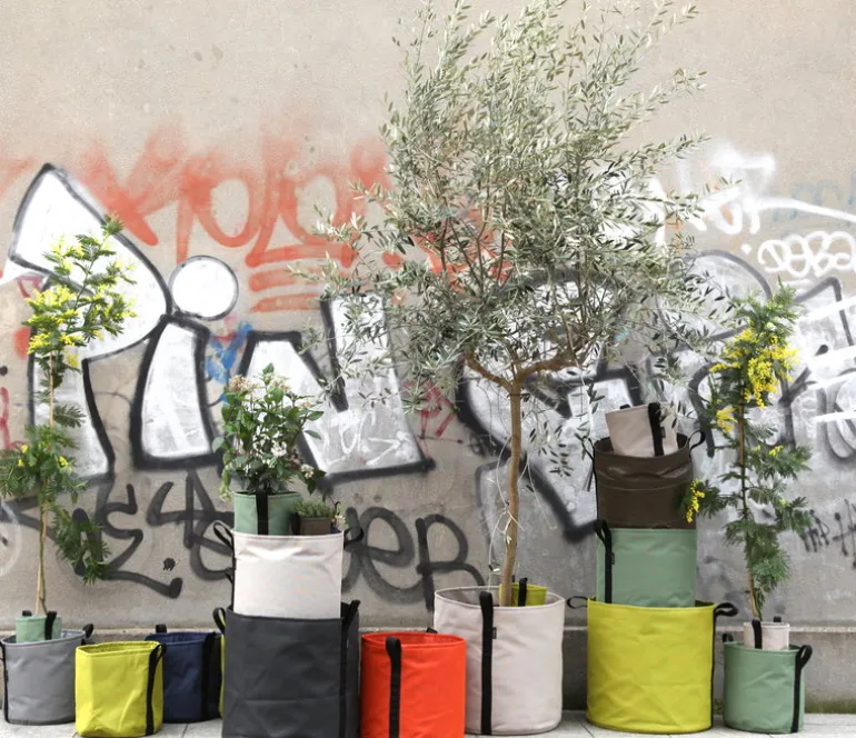 The Bacsac flower pots and planters were created by designer Godefroy de Virieu and landscapers Virgile Desurmont and Louis de Fleurieu who decided to develop a new, affordable and easy solution for urban gardening – Bacsac is a lightweight alternative for traditional, heavyweight planters. The recyclable and permeable Batyline fabric allows the soil to breathe and water to drain as needed by the plant. The double-layered material is UV-resistant, frost-proof and tear-strength.