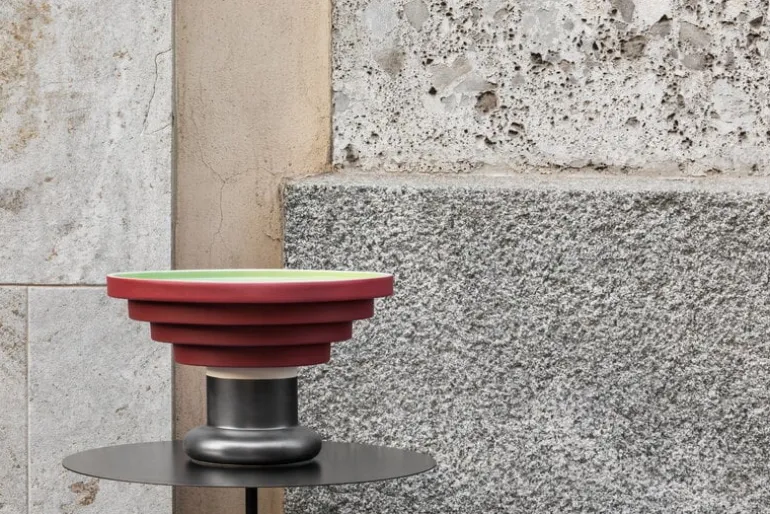 Bitossi’s Alzata centerpiece represents Italian designer and architect Ettore Sottsass at his purest: the experimental modern design of this bowl is characteristically adorned with a vibrant red surface. The inside of the bowl is left green – a contrasting hue, also typical of Sottsass’s style!