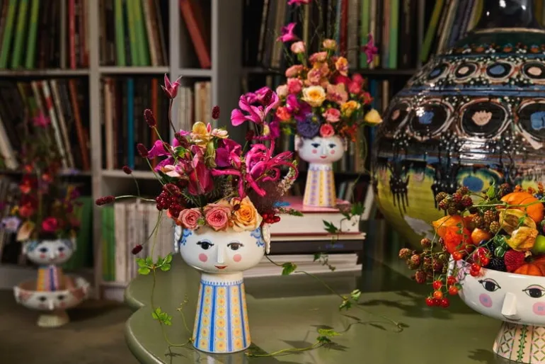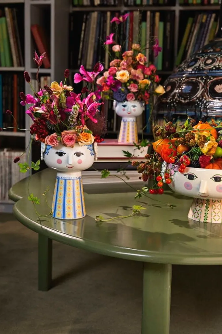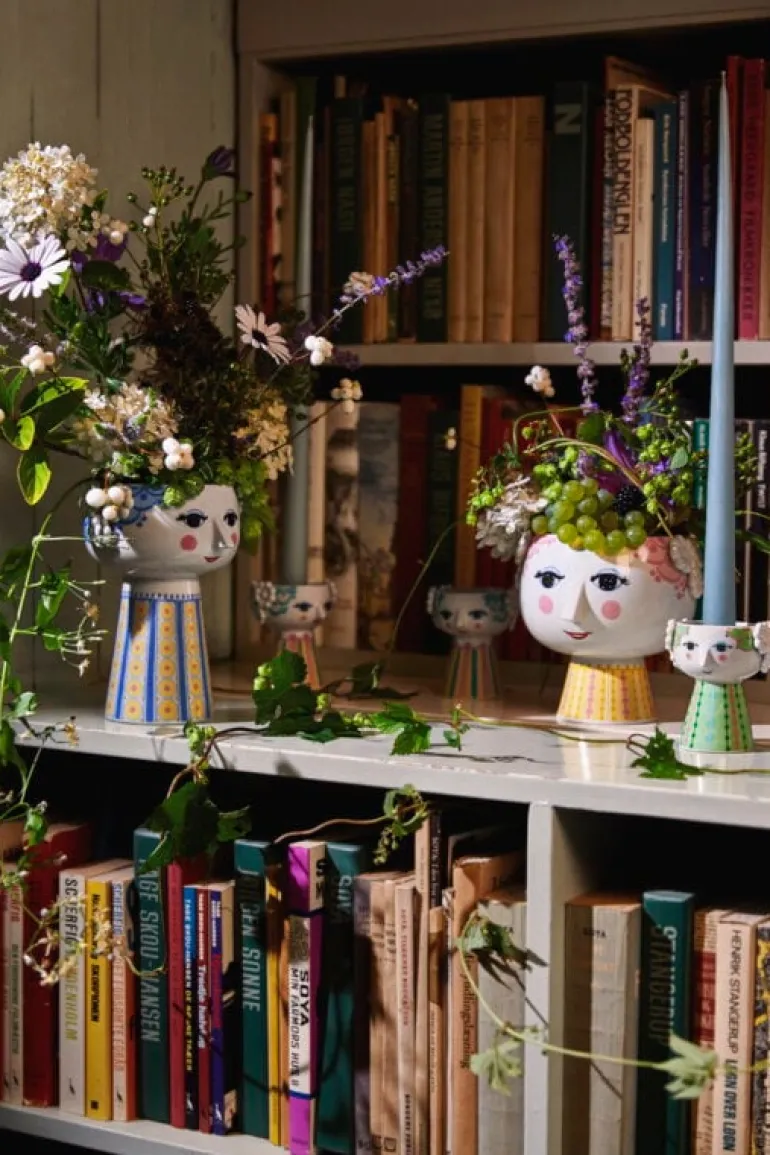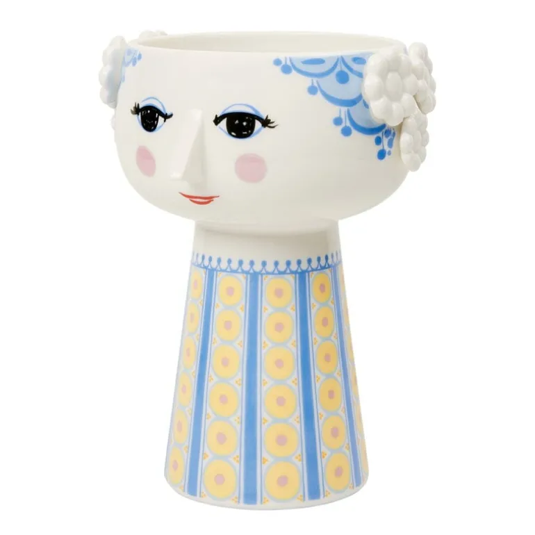 Bjørn Wiinblad’s Eva vase offers the most enchanting setting for a lavish bouquet or just a few stems, and the expressive vase looks just as captivating also when empty. Crafted from glossy-glazed porcelain, the Eva vase is guaranteed to bring a smile to your face and add a touch of sweetness to any interior, and it makes a wonderful gift as well.
