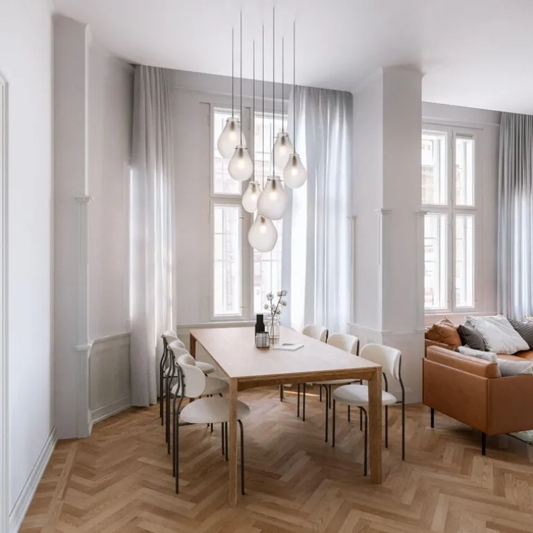 Bomma’s Soap pendant captures the playful lightness and fleeting beauty of soap bubbles. Designed by Ota Svoboda, the pendant lamp is made from crystal glass through a mold-free mouth-blowing technique. This unique process ensures that each piece is entirely one-of-a-kind –just like every soap bubble is! The Soap pendant makes a stunning statement on its own but reaches new heights of brilliance when grouped into a radiant cluster of shimmering lights.
