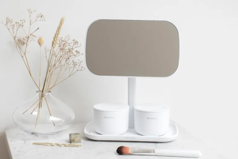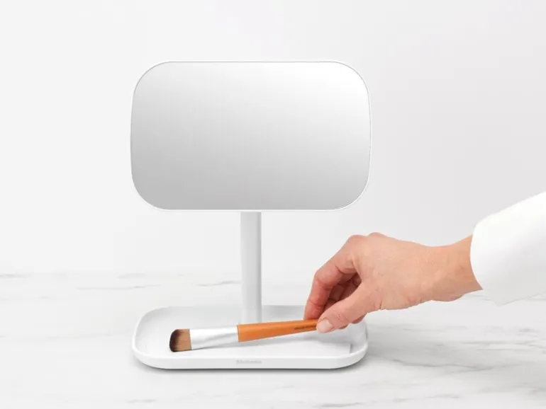 Brabantia’s table mirror has everything you could ever want from a looking-glass: a mirror surface that can be adjusted 360 degrees, a handy storage tray for makeup, jewelry or hair accessories, and a non-skid base that keeps the mirror firmly in place. The mirror is made from corrosion-resistant materials and it has a 5-year warranty.