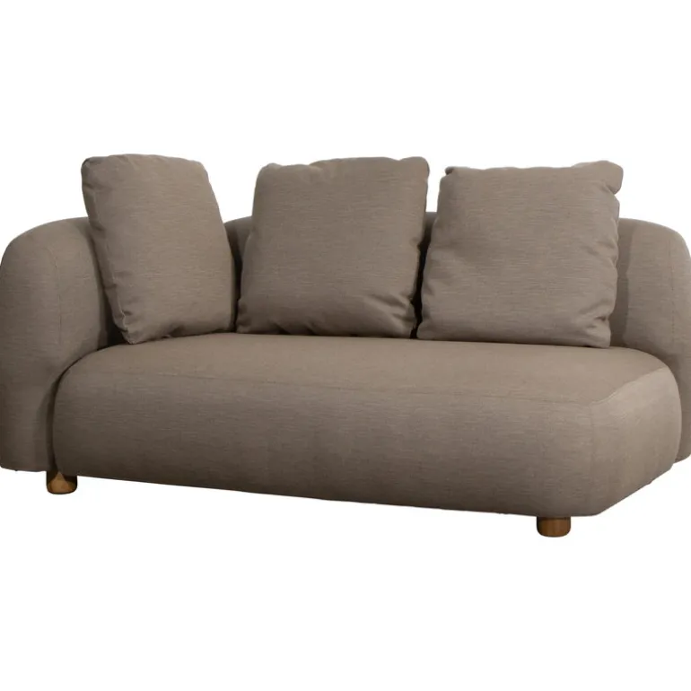 Cane-line’s Capture sofa provides weatherproof comfort and unparalleled versatility for both smaller and larger outdoor areas. The two-seater sofa is fully upholstered with Cane-line’s own AirTouch fabric, whose QuickDry & Airflow system ensures that the fabric dries in just one hour after a downpour. The frame of the sofa is made of aluminum and the legs from teak. Featuring an armrest on the right-hand side, this Capture sofa comes with three removable, machine-washable cushions.