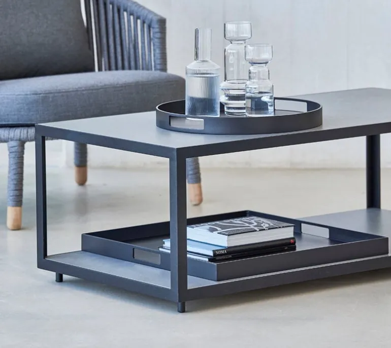 Cane-line’s Club tray is a capacious tray designed for indoor and outdoor use. Made of powder-coated aluminum, the Club tray features low edges and sturdy handles, and its scratch-resistant surface has a high lightfastness.