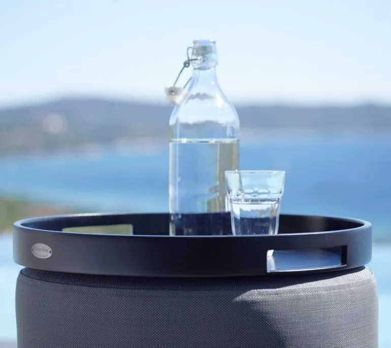 You can also place the Club tray on top of a matching footstool to transform it into a small coffee table – the round tray fits Cane-line’s round footstools.