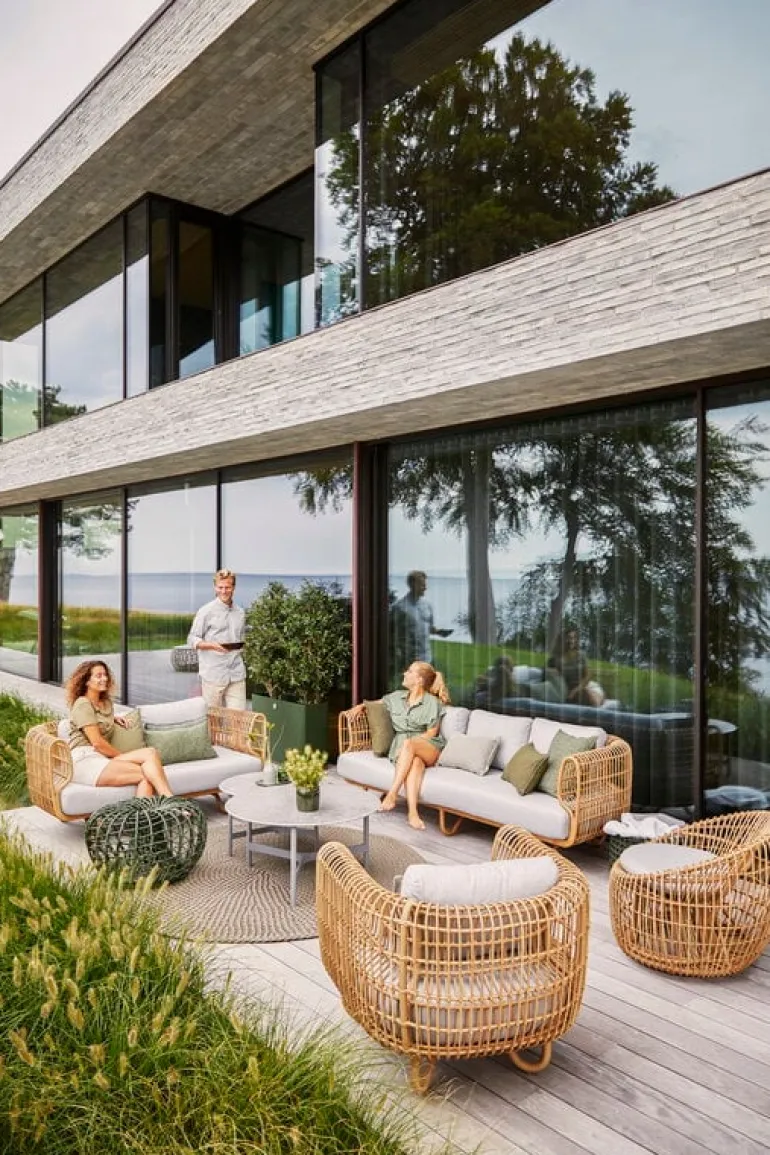 Cane-line’s Nest round outdoor chair is a fine example of Danish design. Designed by Foersom & Hiort-Lorenzen, the chair is made of aluminum and Cane-line Weave and completed with cushions especially designed for outdoor use. Cane-line Weave is a fiber made of dyed and hard-wearing polyethylene. The material is ideal for outdoor use as it is highly weather-resistant and maintains its colors and shape for years on end. Place the lounge chair on your patio, balcony or garden to create a cozy yet stylish reading nook or lounge area.