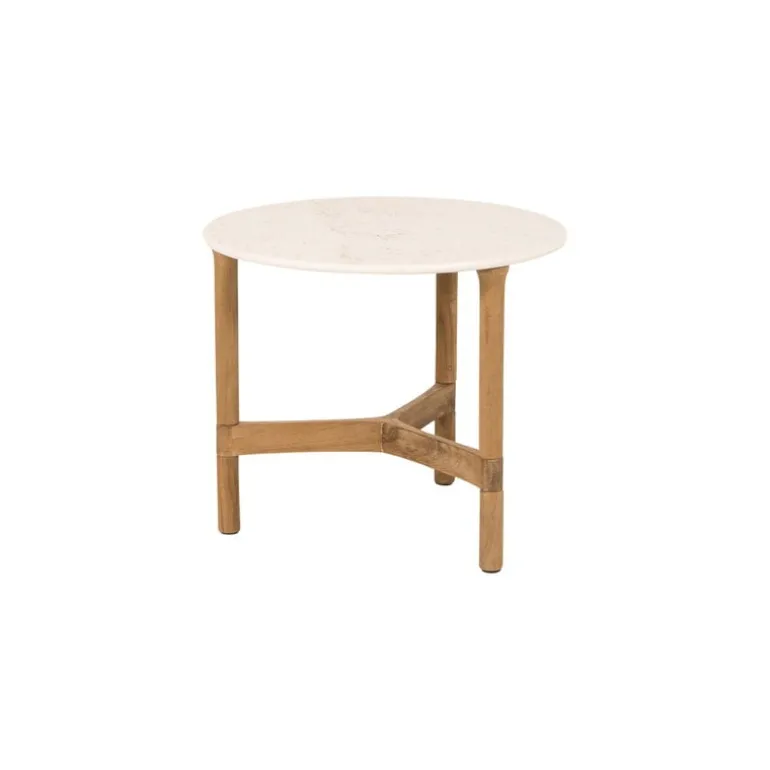 The Cane-line Twist coffee table is bound to surprise you with its versatility: the table can be placed both indoors in the lounge and outdoors on the terrace, balcony or garden. The table consists of a teak wood frame and a ceramic table top resembling travertine stone – the durable, easy-care material features natural variations in its hue, which gives the table a unique, exclusive character. The tables are available in several sizes, so they can also be assembled into a cluster in the center of your living area. The Twist coffee table has been designed by the Danish design agency byKATO.