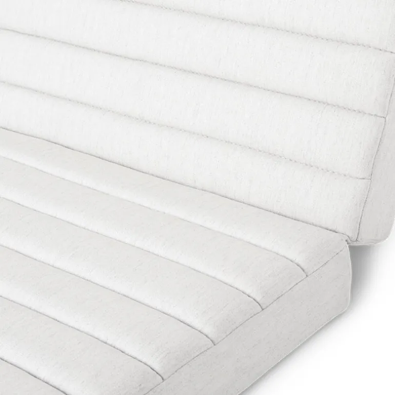 This seat cushion is designed for Carl Hansen & Søn’s AH604 sun lounger from the AH Outdoor series. The furniture itself can be used with or without the cushion – it just adds a bit of extra comfort. The quilted cushion is made of a durable outdoor textile and finished with nifty straps to hold it in place.