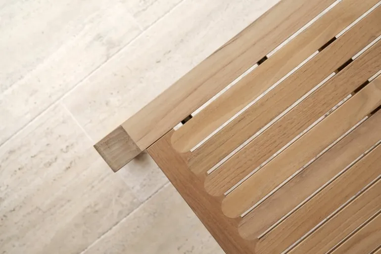 Just like all furniture in the AH Outdoor collection, the table is made of certified teak wood. The durable material ages beautifully, turning from a warm brown to a dignified silvery gray. If you wish to keep the original color, be sure to oil the furniture before the first use and regularly thereafter.