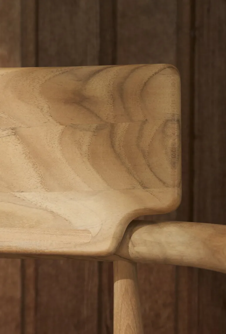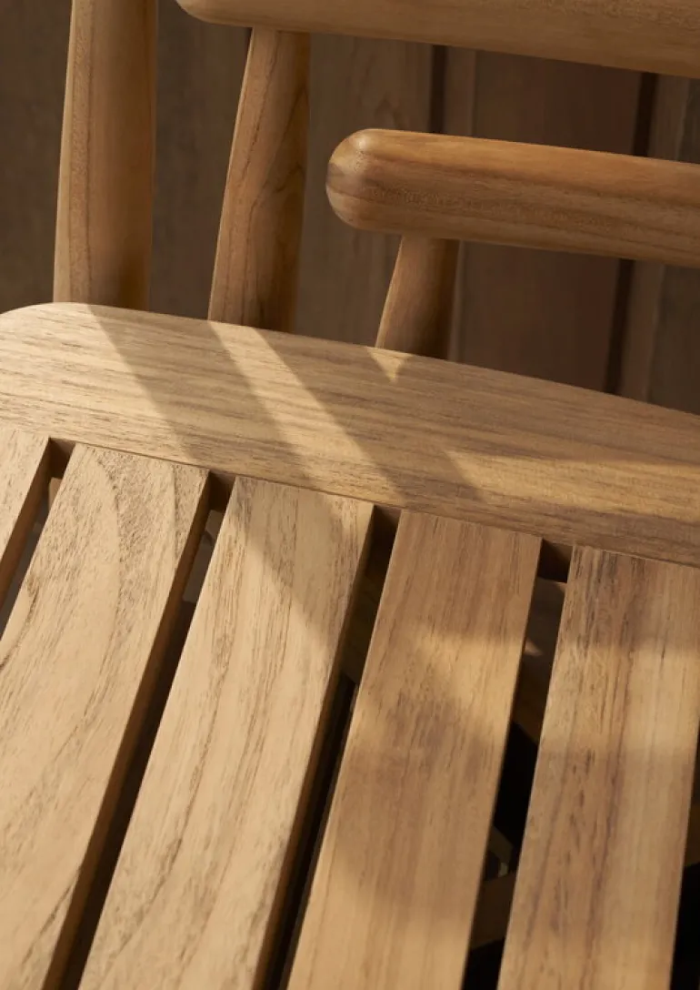 Carl Hansen & Søn’s Embrace E008 dining chair delights with its unique appearance where the natural beauty of wood with its varying grain patterns meets elegant contours. Designed by EOOS, the garden chair is made of untreated teak which is especially well-suited for outdoor use. The material is not only durable but also develops a patina over time and use, giving the Embrace outdoor chair an even more unique appearance when years go by. If you prefer an original tone, we recommend treating teak furniture with a suitable teak sealant.