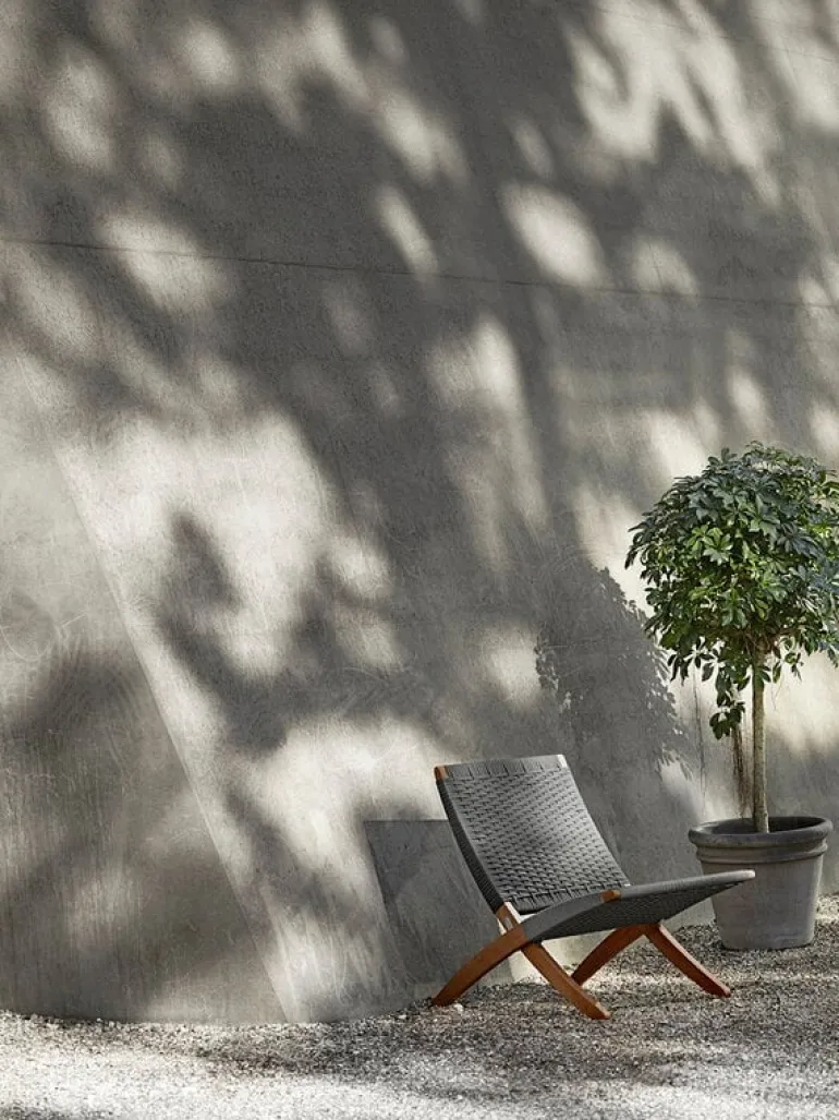 Carl Hansen & Søn’s MG501 Cuba outdoor lounge chair is a perfect representation of functional furniture design. Designed by Morten Gøttler in 1997, the Cuba chair offers a great expression of sculptural shapes and functionality in an extremely sleek form: the lounge chair features a foldable solid wood frame and a durable, weather-resistant flat rope weave. Over the years, natural patina adds even more character to the piece as the teak turns a beautiful silver hue.
