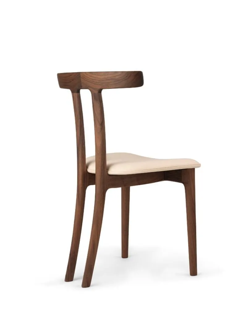 Carl Hansen & Søn’s OW58 T-Chair is a graceful wooden chair created by the Danish designer Ole Wanscher in 1958. The T-shaped silhouette of the chair was achieved by placing the back legs very close to each other, and the straight lines of the design are softened by beautifully rounded corners and a curved, upholstered seat. A result of skilful carpentry and hours of work, the T-Chair is perfectly suited as a dining table chair, and thanks to its sculptural expression, it also stands out in the interior when used as a single side chair.