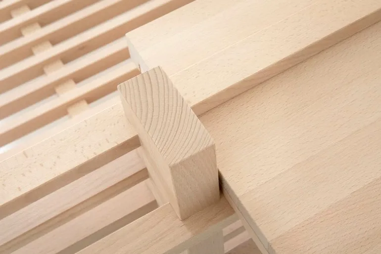 The Cubile 180 bed by Collaboratorio is named after the beds of Ancient Rome: in addition to an actual bed, the word cubile denotes more generally a place of rest. The beautifully natural untreated beech highlights Cubile’s simple form and brings a sense of calmness to the bedroom. The bed fits a 180×82.68 in (210 cm) mattress and is 8.46 in (21,5 cm) high, and it can be assembled without any screws or tools. The spare and sleek Cubile is the perfect choice for a minimalist home.