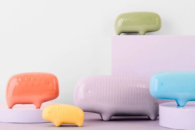 The Primordial Animals are available in various sizes in different shades. In each color family, the size XL sculpture features a stripe pattern on its glaze back that may vary slightly between individual sculptures. The exact positioning of the glaze itself or the creature’s eyes may also vary – each Primordial Animal is unique.