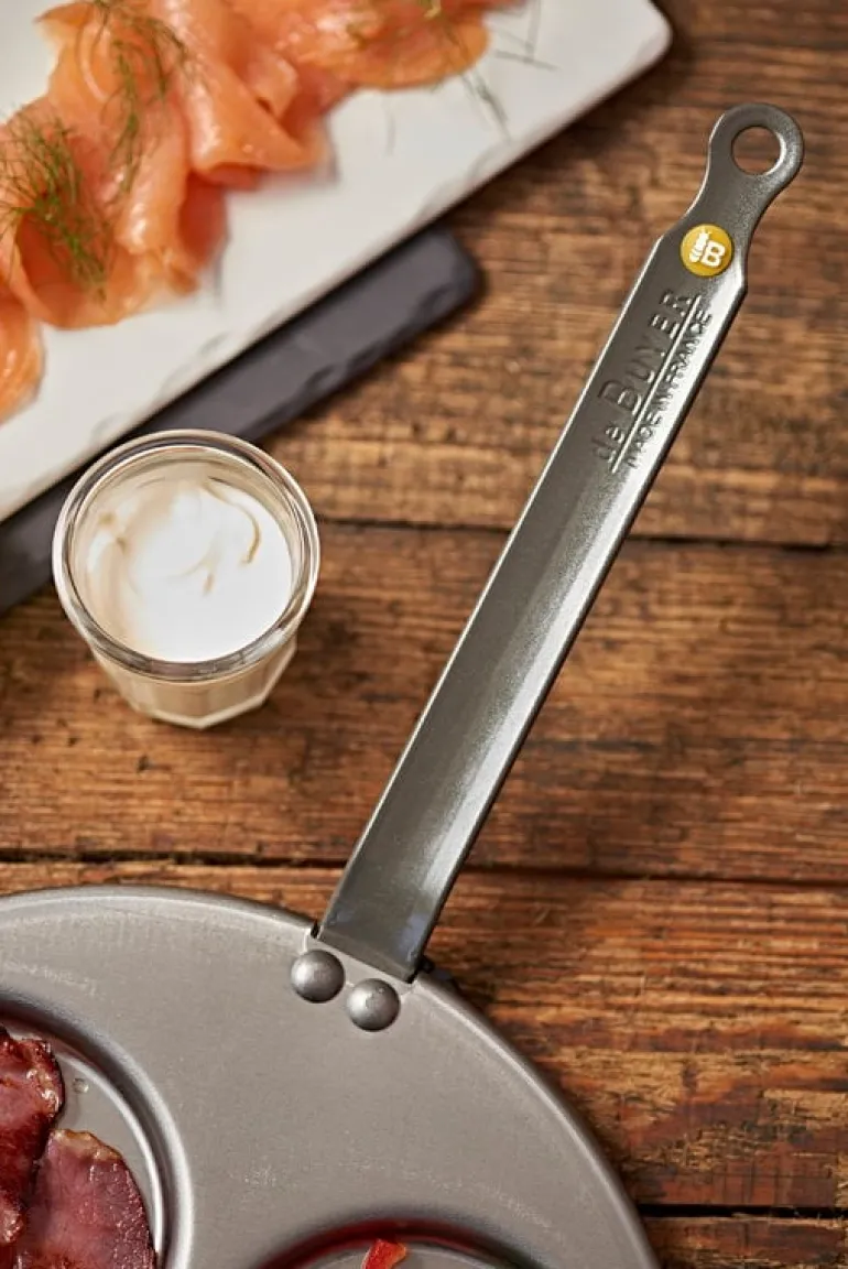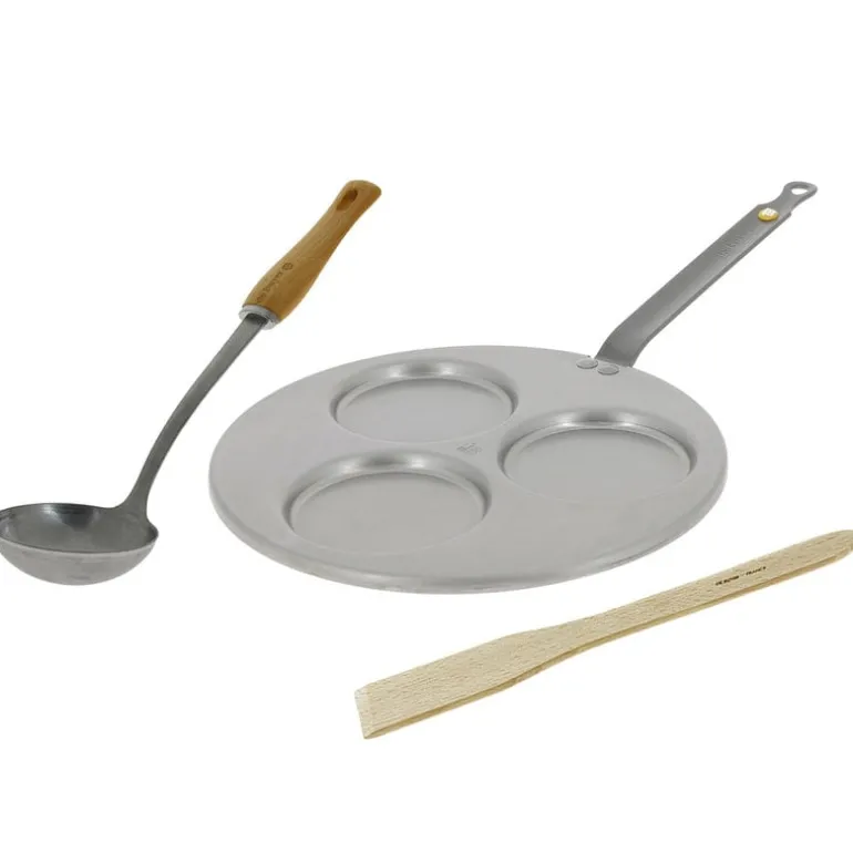 De Buyer’s Brunchtime Box has everything you need for a perfect brunch or breakfast. The set includes the Mineral B carbon steel pan for making pancakes or eggs, a steel ladle with a beech handle, and a spatula made of beech wood. Also included in the gift set is a booklet filled with easy and delicious recipes from well-known French baker and pastry chef Benoît Castel.