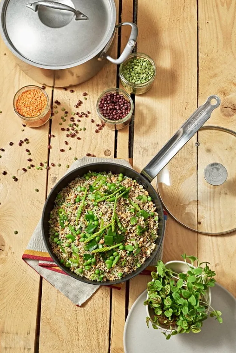 This glass lid is compatible with De Buyer’s 9.45 in (24 cm) Choc Intense sauté pan. The lid is ovenproof up to 200 degrees Celsius.