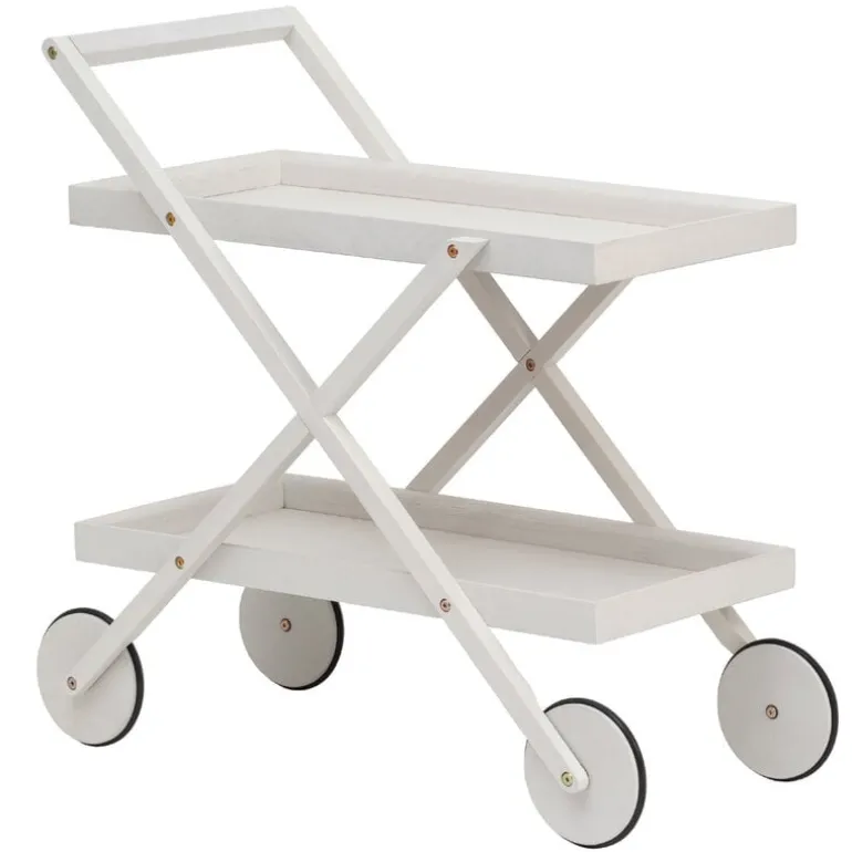 The Exit trolley by Design House Stockholm is truly a multifunctional piece of furniture whose clean-lined design makes it a great addition to any space, whether used as a storage unit in a private residence or a dish trolley in a café or restaurant. Made of white stained ash, the trolley is equipped with rubber-rimmed wheels that make it possible to move the trolley silently and without scratching the floor.