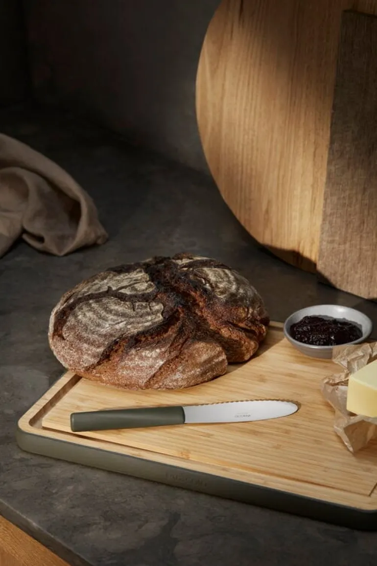 Eva Solo’s Green tool butter knife is your reliable companion in both kitchen and table settings. The butter knife has a wide stainless steel blade that is ideal for applying butter, cream cheese and other spreads evenly. You can also use the knife to slice tomatoes or even bread – the knife’s sturdy handle ensures a secure grip.