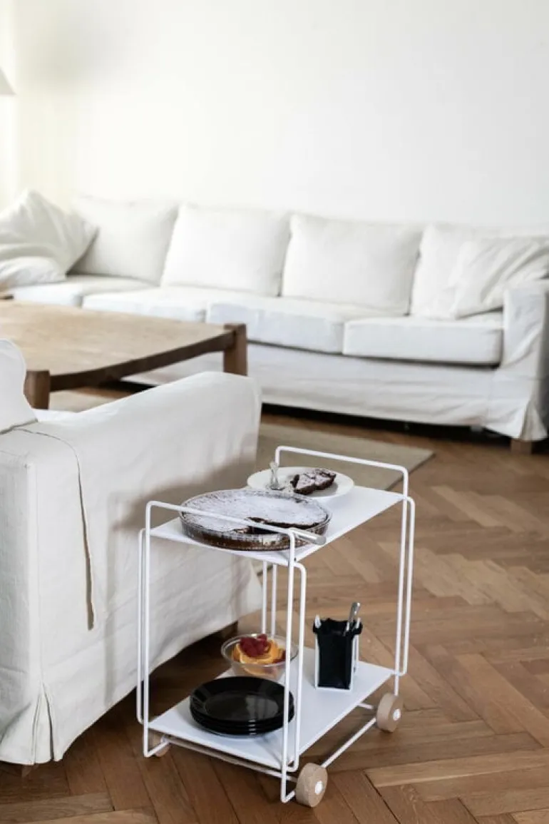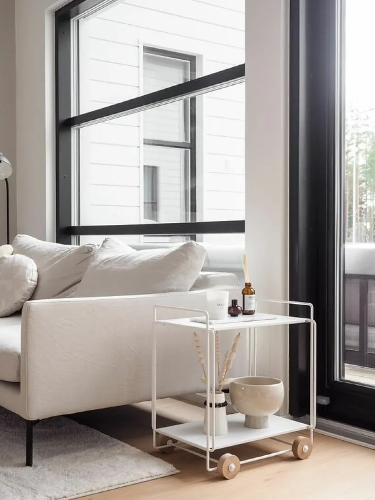Everyday Design’s Tampere serving trolley is a handy, practical and cleverly sized helper to add more space to even the smallest spaces. The serving trolley is made of durable metal and features wheels made of aspen, with a natural look that brings soft warmth to the industrial appearance of the trolley. The multipurpose Tampere trolley can be used as a serving trolley for dinners, as an additional side table in the kitchen or as a shoe and accessory trolley in the hallway – the possibilities are almost endless! Designed by Helena Mattila, the serving trolley is manufactured in Finland and named after the Finnish town Tampere, which is the most populous inland city in the Nordics.
