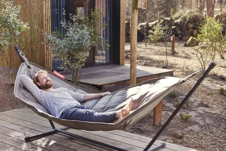 Fatboy’s Headdemock is perfect for lounging on lazy summer days. The modern hammock doesn’t need trees since it comes with a sturdy frame – feel free to place it on your favorite spot whether it is a terrace, a balcony, a garden or a beach. Headdemock is made of durable, water, dirt and UV resistant fabric that makes it well suited for outdoor use. What’s more, the hammock is available in an array of beautiful colors and it’s large enough to enjoy with a friend. When the weather is not nice enough to lounge on your Headdemock outside, we recommend to store your Headdemock indoors or protect it with the Headdemock cover, available for purchase separately.