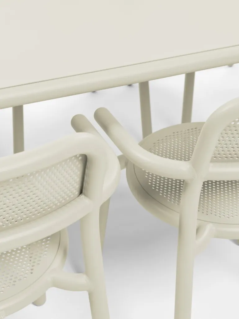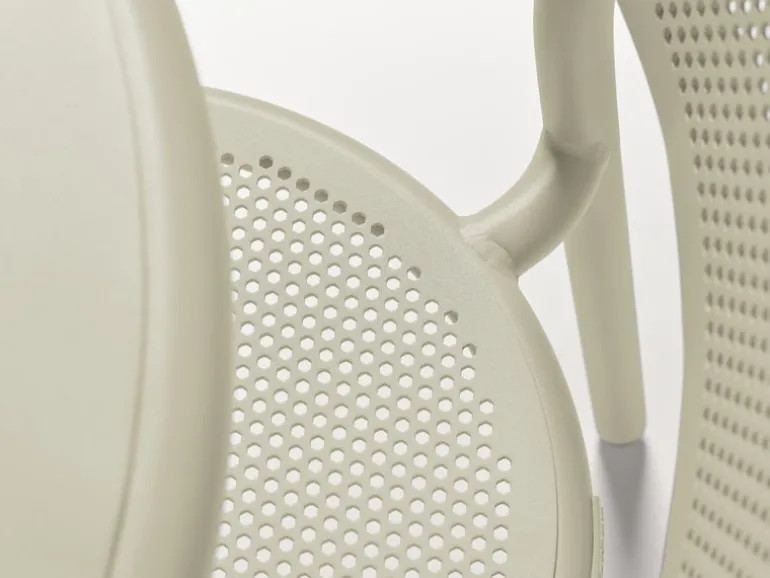 Fatboy’s Toní armchair has a fun design that carries a reference both to industrial elements as well as to classical café furniture: the tubular frame bears a resemblance to safety railings, while the perforated seat and backrest evoke images of traditional Viennese chairs. Toní garden chairs are stackable and easy to move.