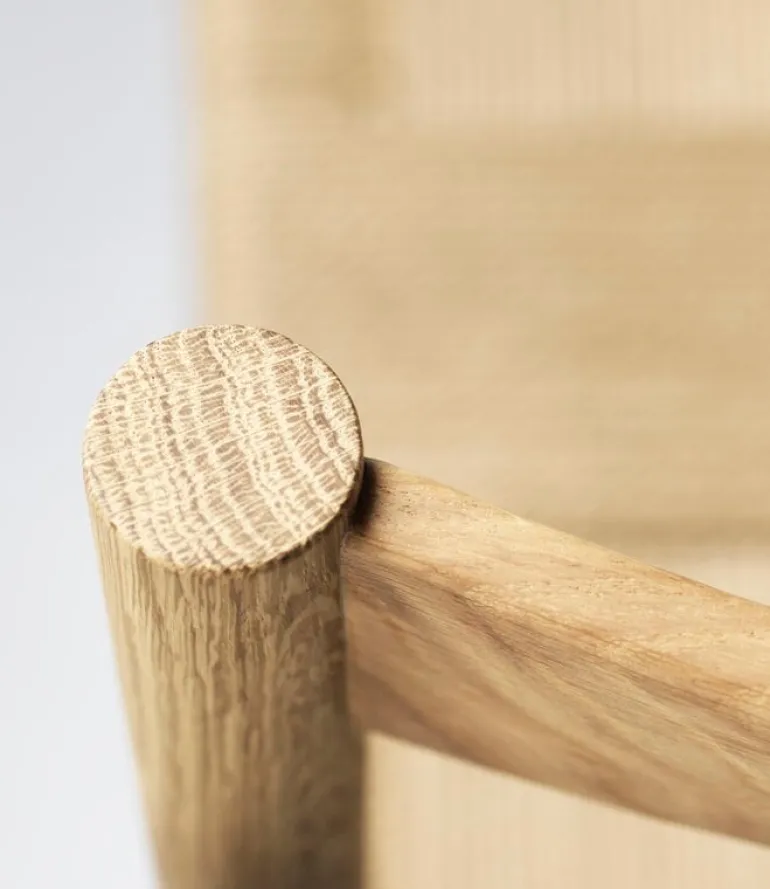 FDB Møbler’s J178 Lønstrup chair is characterized by organic, soft shapes and natural grain patterns of solid oak. The Lønstrup chair’s frame is composed of rounded oak rods, and its patterned seat is hand-braided from paper cord.