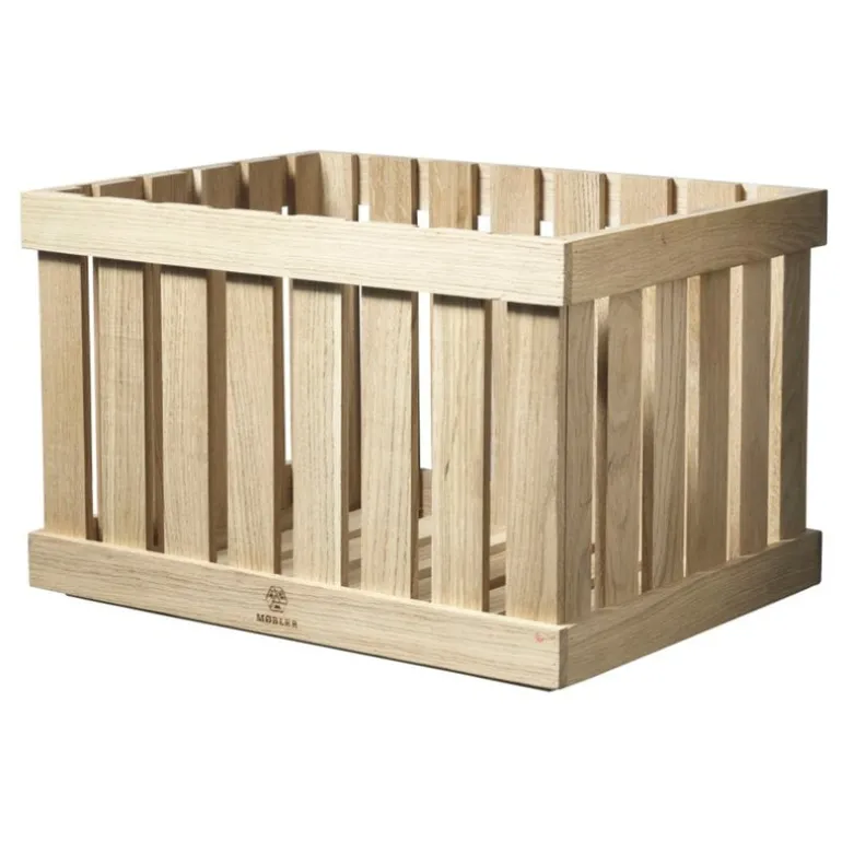 The oak wood box exudes an old-fashioned charm that makes it the perfect addition to rustic décor, for example at a summer cottage. However, the old-timey look also creates a delightful contrast in a more urban interior. The apple box is finished with the FDB Møbler logo.