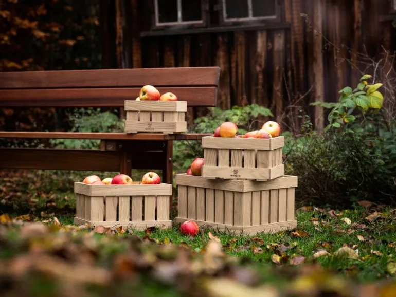 FDB Møbler’s charming wooden box is Monica Ritterband’s modern interpretation of apple boxes traditionally used for harvesting. In addition to apples and other goodies from the garden, the wooden box is suitable for a variety of storage needs in the home.