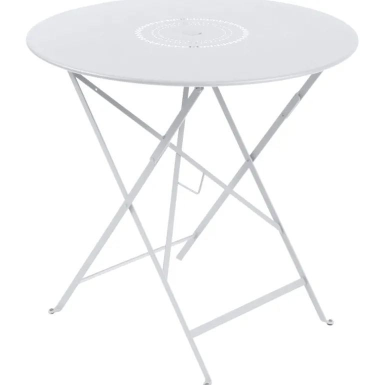 The Floreal table by Fermob is a lightweight folding table designed for outdoor use. The patio table is made of steel, with delicate rings of perforations on the table top functioning both as decorations and as decorative elements. The round table top also features a parasol hole, should you prefer to enjoy your summer days in the shade.