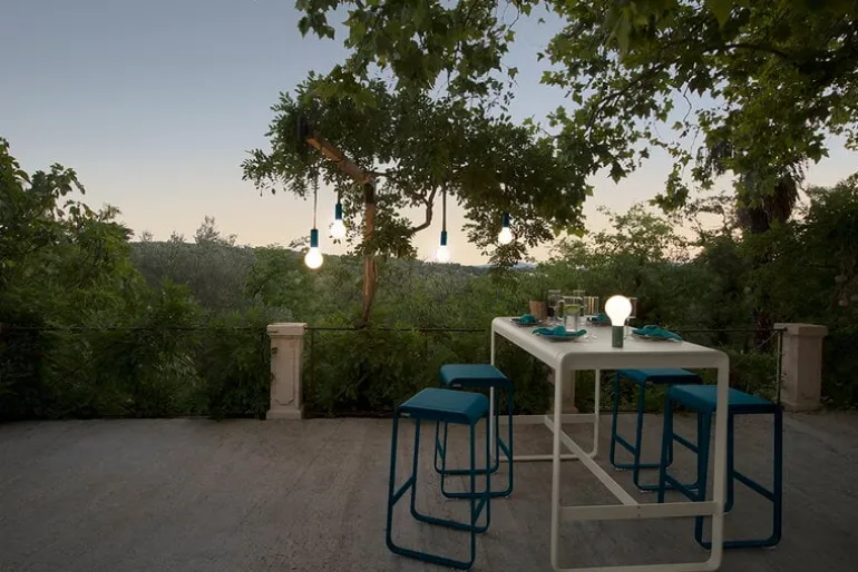 This polyester suspension strap transforms your Fermob Aplô luminaire into a pendant light! Typically a table lamp, the Aplô now offers at least double the versatility: hang it from the ceiling as ambient light or direct the light specifically over a sofa set or dining table. With an IP54 rating, the Aplô lamp is also suitable for outdoor use, so you can even suspend it from a tree branch to illuminate an evening garden dinner!