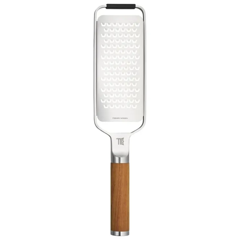 The Fiskars Norden coarse grater is designed for grating ingredients such as soft cheese, carrots, ginger and other vegetables. The grater is made of high-quality stainless steel and equipped with a birch wood handle and a non-slip rubber end. Due to the natural variations of the wood, each piece is unique.