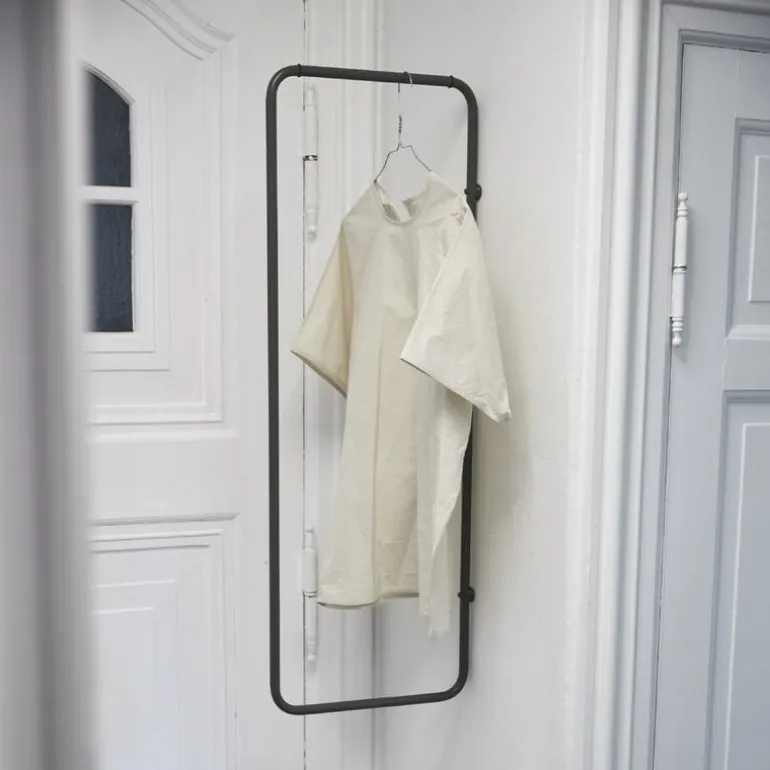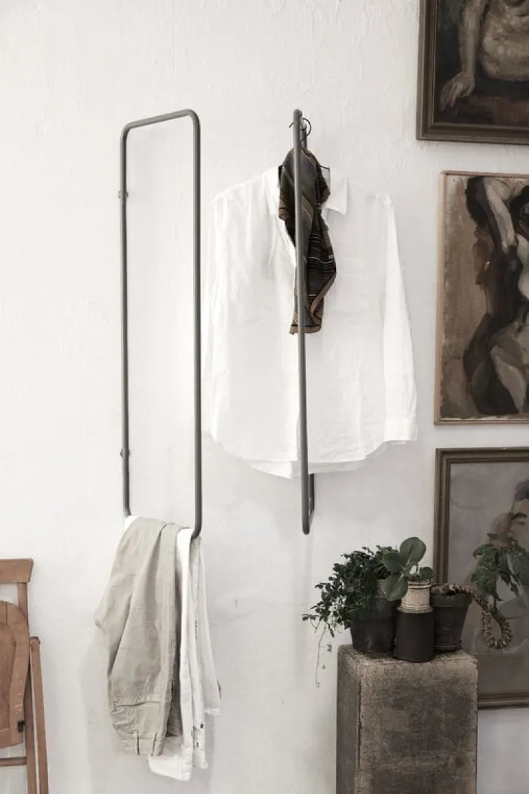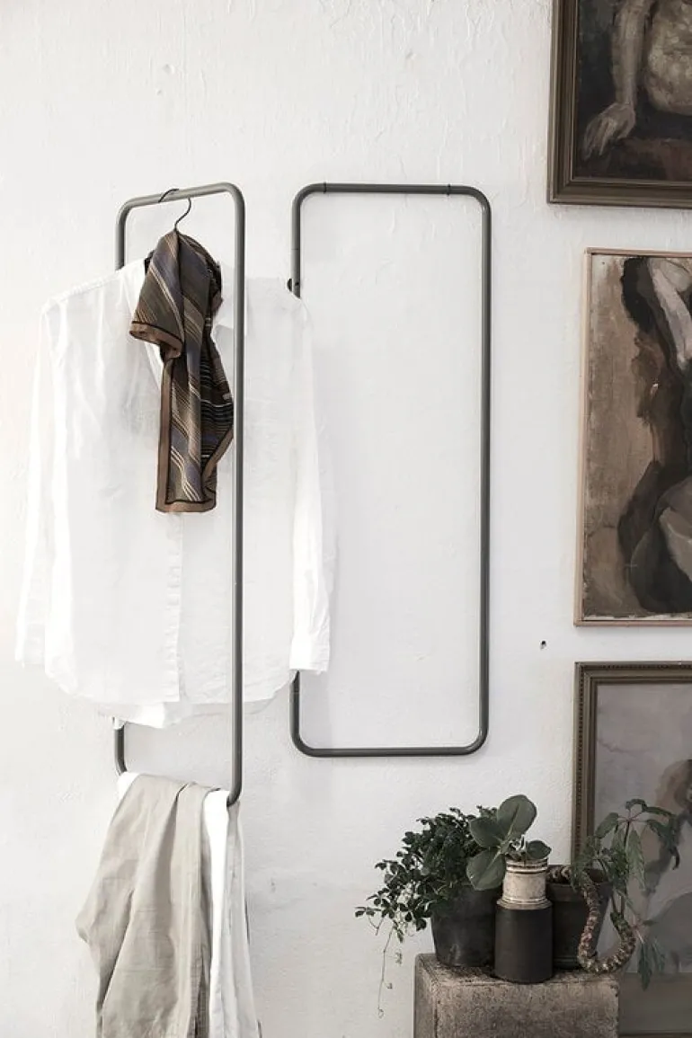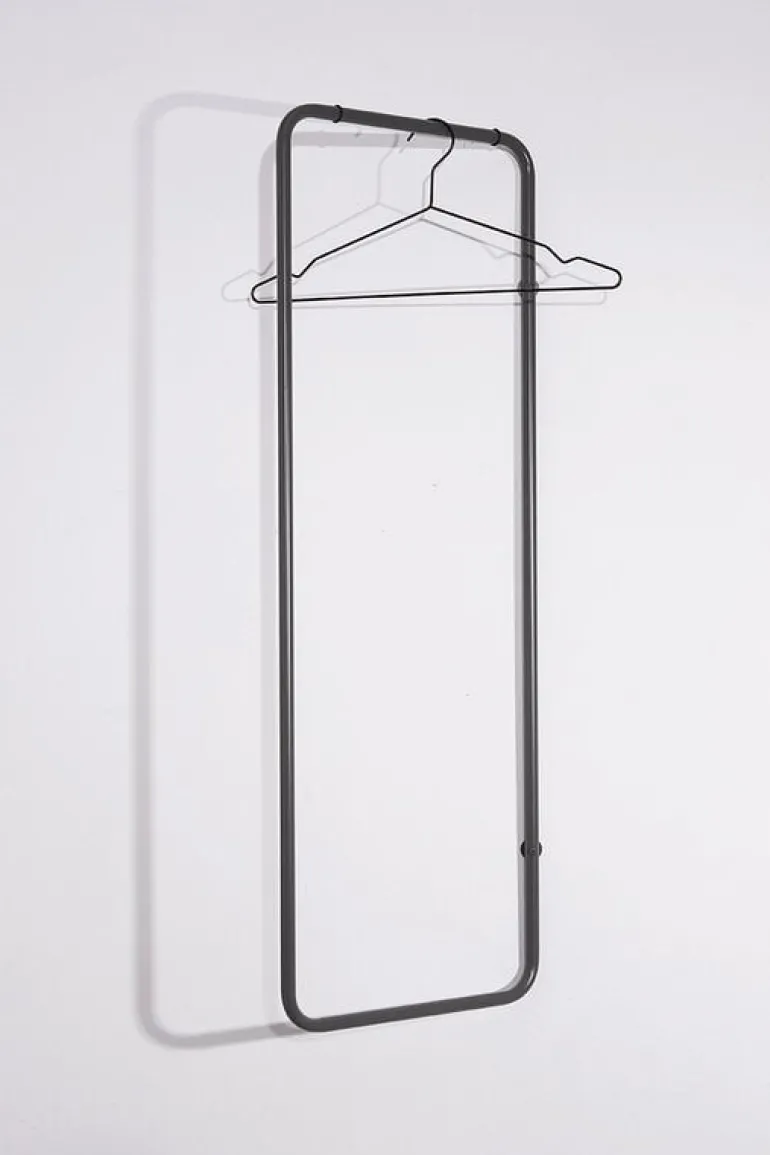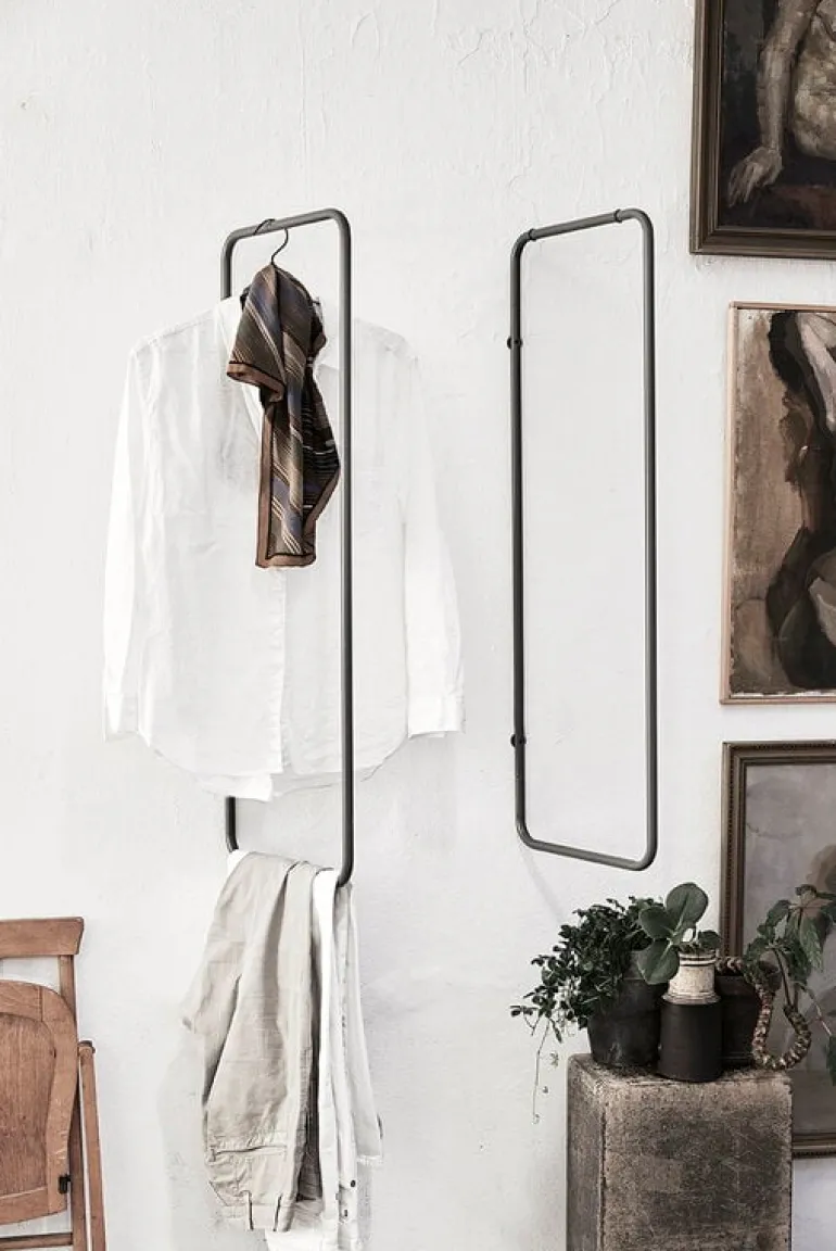 The minimalist Turnaround clothes rack by Fólk Reykjavik is an ideal choice especially for small spaces since it can be turned flat against the wall. The simple, rectangular steel pipe frame is lightweight, unbreakable and easy to install with only two screws. Place the Turnaround rack in the hallway, bathroom or behind the bedroom door or create a whole book of clothes with several racks.