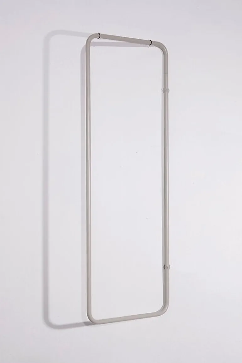 The minimalist Turnaround clothes rack by Fólk Reykjavik is an ideal choice especially for small spaces since it can be turned flat against the wall. The simple, rectangular steel pipe frame is lightweight, unbreakable and easy to install with only two screws. Place the Turnaround rack in the hallway, bathroom or behind the bedroom door or create a whole book of clothes with several racks.