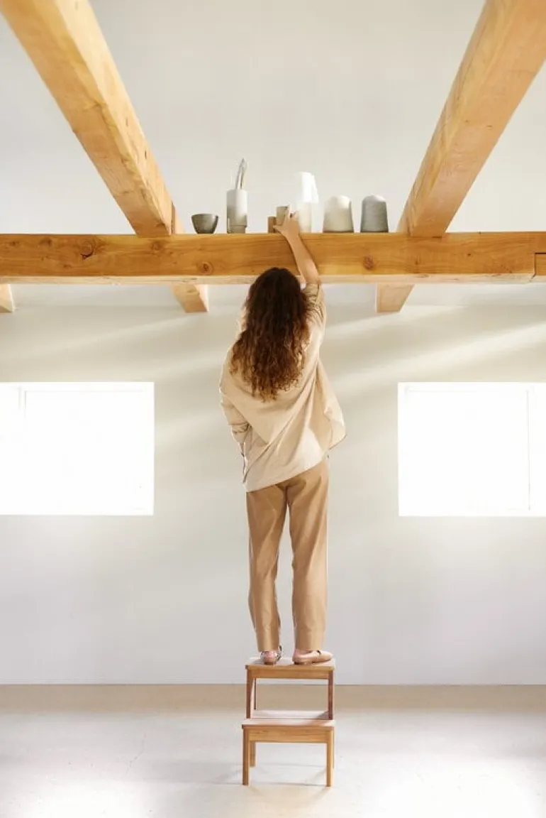 A Line step ladder is a versatile helper for different rooms in your home. The ladder is designed by Herman Studio and is part of Form & Refine’s A Line collection that pays respect to Danish woodworking traditions with its solid wood furniture, organic expression and timeless elegance. Made from oak, the A Line step ladder has two sturdy steps that also function as seats or tabletops, depending on where and how you decide to use it. Thanks to its clever design, the step ladder adapts smoothly to many kinds of purposes – use it as a ladder or extra seat in the kitchen, nightstand in the bedroom or practical side table in the kids’ room or hallway.