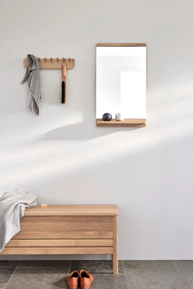 The Form & Refine Rim mirror is designed to look as if floating slightly off the wall. Designed by Herman Studio, the mirror boasts a clean-lined, minimalist expression that is softened by the natural warmth of wood and the beautiful patterns of its grain. The classic, sleek mirror is equipped with a small shelf for accessories and small objects – the groove at the front of the shelf keeps the items securely in place.