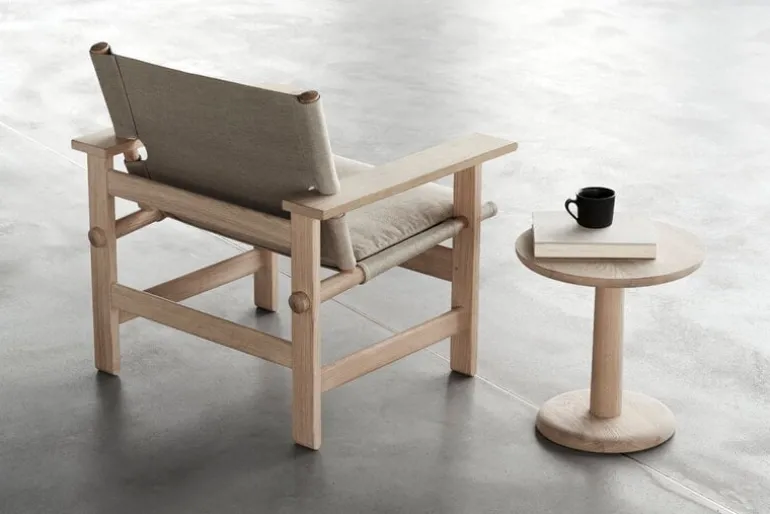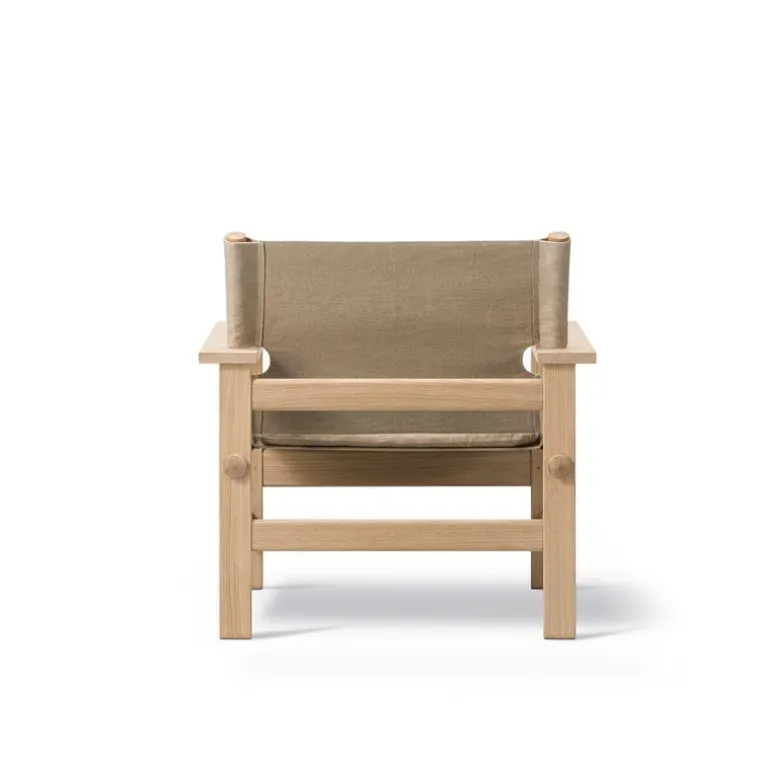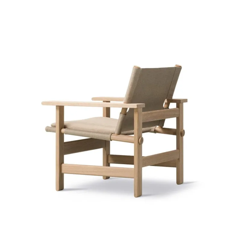 The Canvas chair is easy to recognize as Mogensen’s work due to the strong vertical and horizontal lines of the design. The lines also reinforce the contrast created by the flat canvas between pieces of rounded wood and the frame consisting of rectangular pieces of oak. Despite the angular silhouette, the Canvas chair is characterized by a serene expression that adapts easily to a variety of interiors.