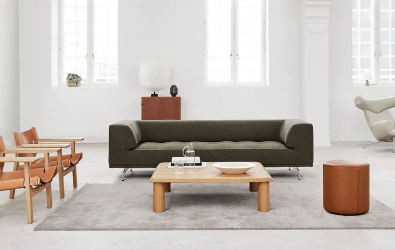 Fredericia’s Delphi sofa brings luxurious elegance and well-thought-out esthetics to a living room or lobby. The Delphi sofa features aligned, equally high armrests and backrests, resulting in an inviting, generous and perfectly supported design for sitting and lounging. The sleek metal base and small curves descending from the armrests are signature details of the otherwise simple, cushionless sofa.