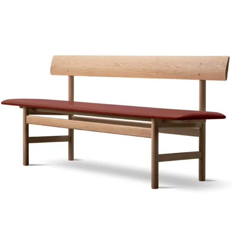 Fredericia’s Mogensen bench from 1956 follows the sleek form of Børge Mogensen’s classic chair design called Mogensen 3236. The timeless, leather-upholstered bench, complete with a backrest, is a great example of the Danish design legend’s minimalist style: high-quality materials and perfect proportions are combined to form a functional yet beautiful piece of furniture that will complement any space and atmosphere be it a modern or a more classic interior.